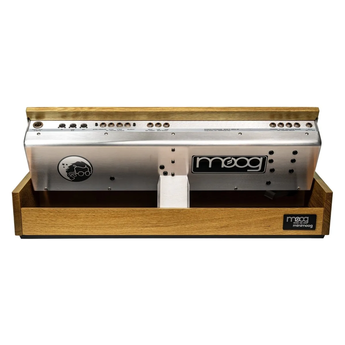 This special edition features a custom photo-anodized badge reminiscent of classic modular systems such as the Moog System 55, Moog System 35, and Moog Model 10, along with early Minimoog designs. A premium quartersawn white oak cabinet, unique rear panel decal, and included SR Series travel case further enhance its exclusivity and craftsmanship.