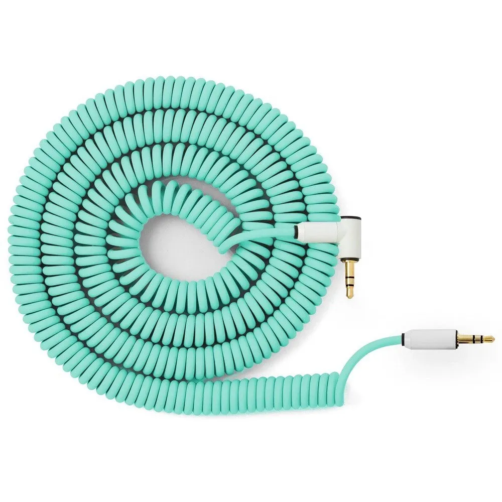 Candycords - myVolts audio cable, straight mini jack to angled mini jack, curly 100cm to 200cm, Mint Green