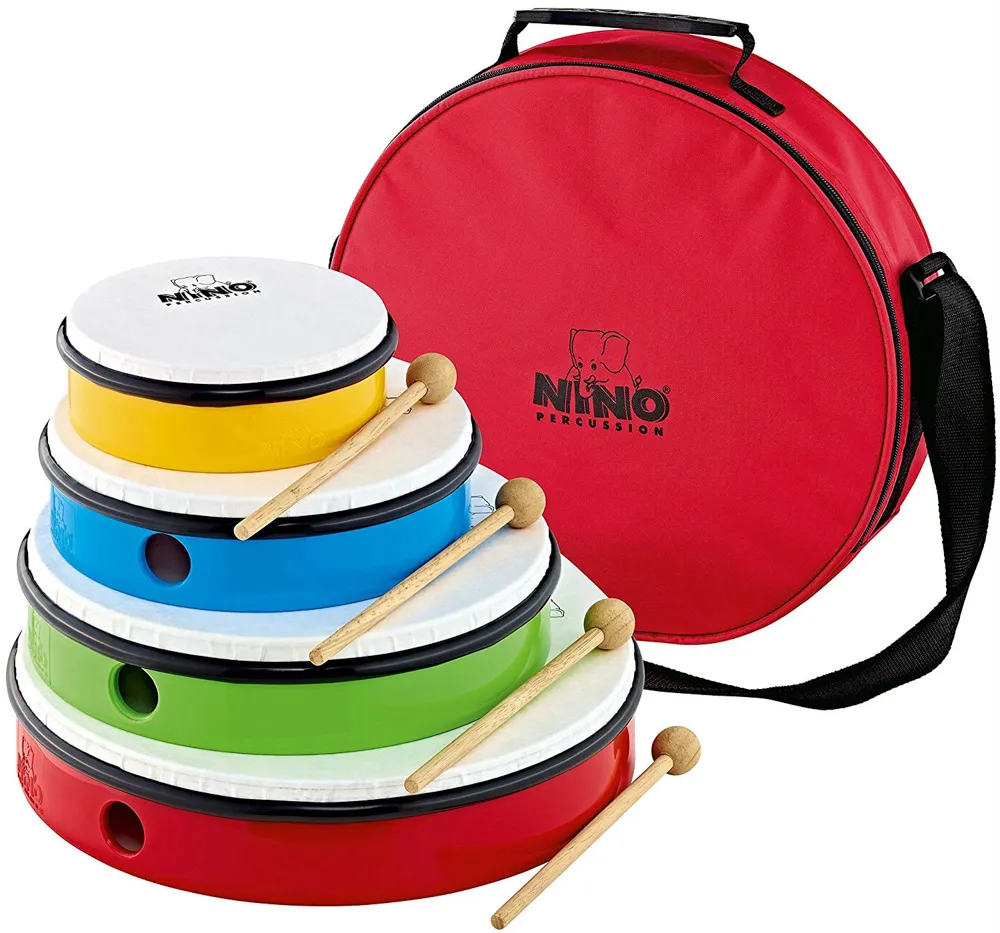 4 Multi-Colored hand drums with mallets
