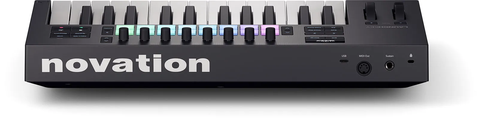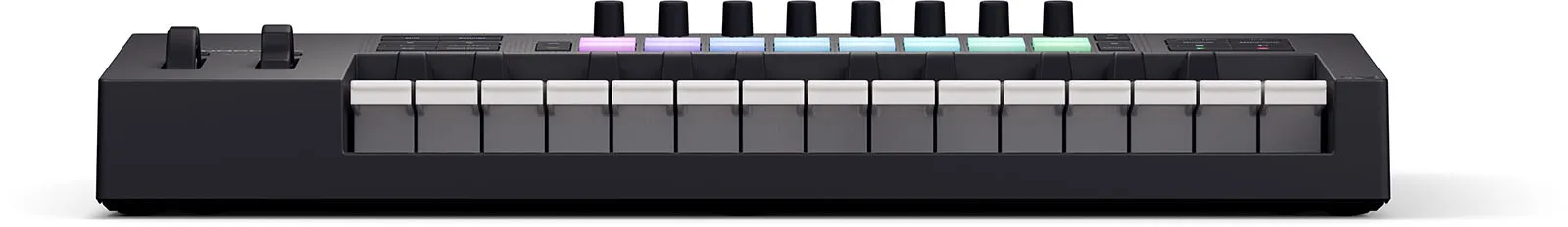 Launchkey 25’s upgraded keybed is sensitive enough for the most delicate melodies while being robust enough to endure the rigours of any performance. 25 semi-weighted, piano-style keys bring the feel of a premium instrument to Launchkey. And for finger drummers, Launchkey now sports our patented, velocity-sensitive drum pads with polyphonic aftertouch. Unlike standard pads, Launchkey features a unique radial sensor that enhances sensitivity and improves consistency, enabling even tighter performances.