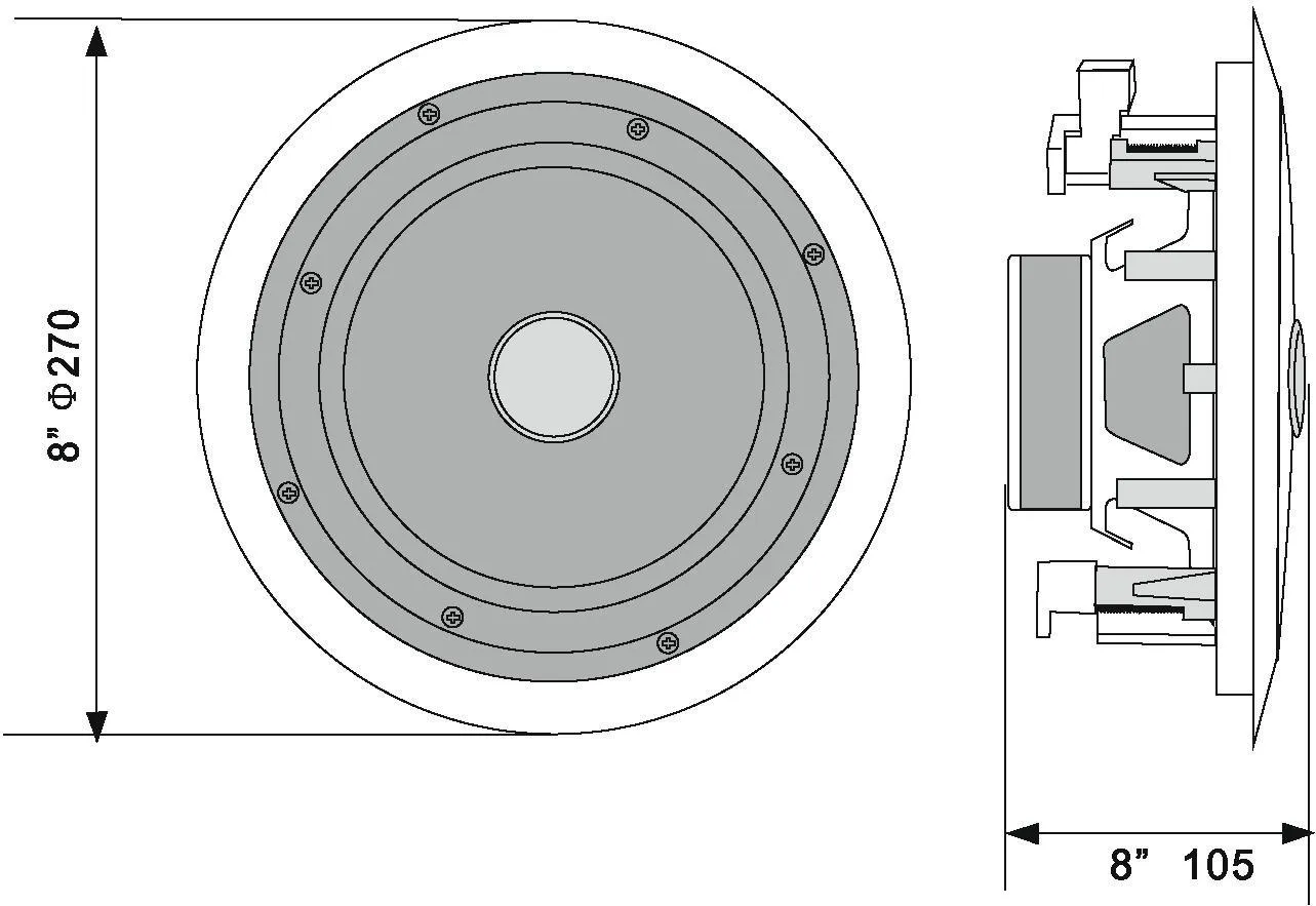 8" flush-mount speaker, public address systems 100V, 40 W RMS, Ø 24 cm