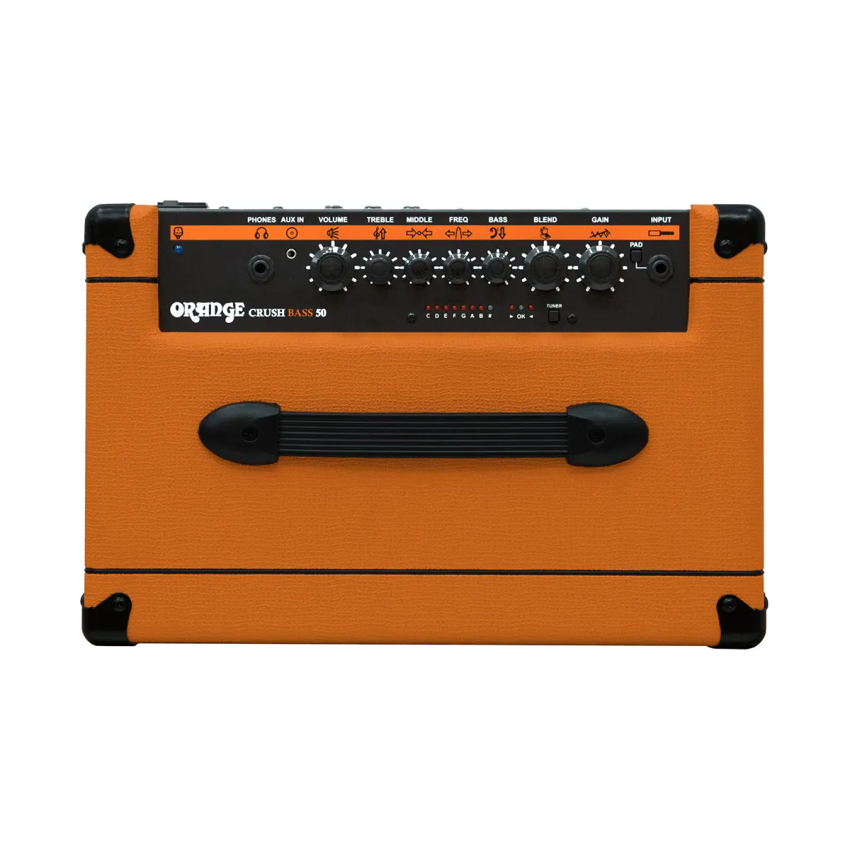 From warm modern cleans, through to vintage grind and all the way up to full-on distorted mayhem, the Crush Bass 50 combines the essentials of a practice rig with tone and features normally reserved for the pros. The Crush Bass 50 draws inspiration from our flagship OB1 and 4 Stroke amplifiers, bringing some of the defining elements of each into a compact combo.