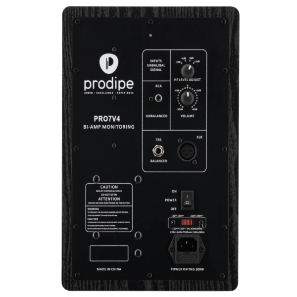 Powerful and bi-amplified (70 + 35 Watts RMS), equipped with a 16.5cm (6.5-inch) woofer and a bass-reflex port on the front, the Pro7 V4s will give you a more consistent bass response than a 5-inch (while avoiding the boomy sound of an 8-inch), as well as easy placement close to your listening point. Equipped with a new neodymium dome tweeter (1 inch) and new electronics, you’ll get even more precision, speed, dynamics and presence to tackle all the styles of the moment in the studio!