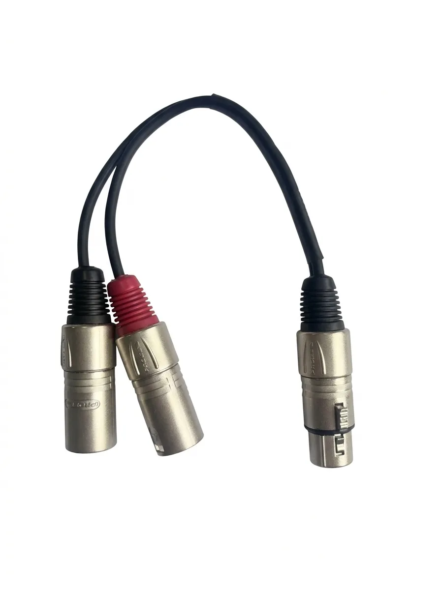 Professional adapter cable for splitting a balanced signal from 1 x female XLR to 2 x male XLR. 20 cm, black.