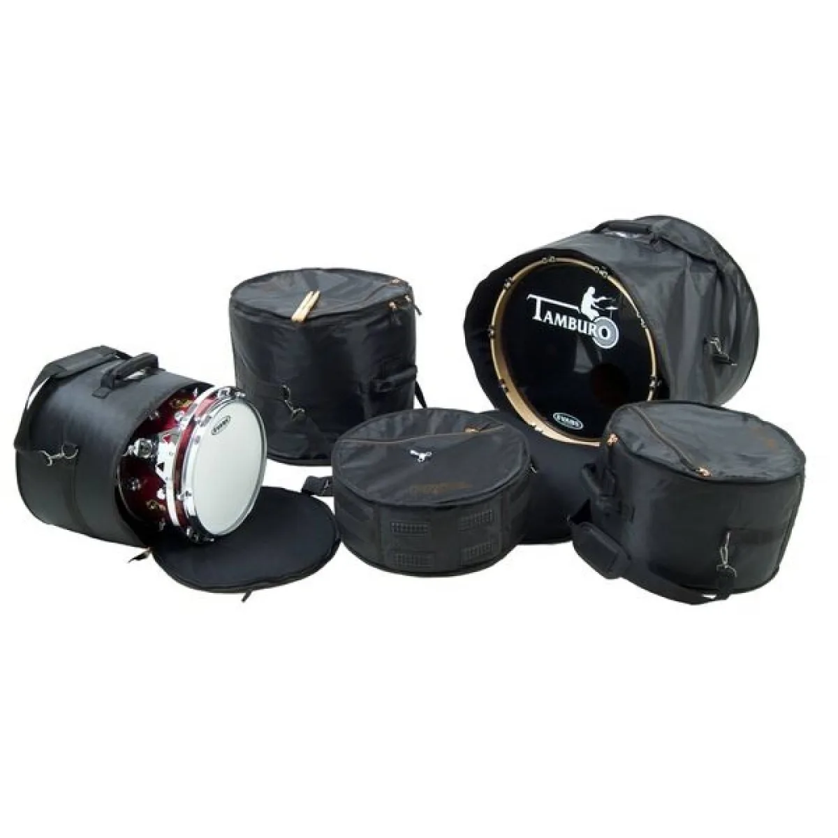 6 professional diff erent size drum bag complete set (ref. table). Available in black.