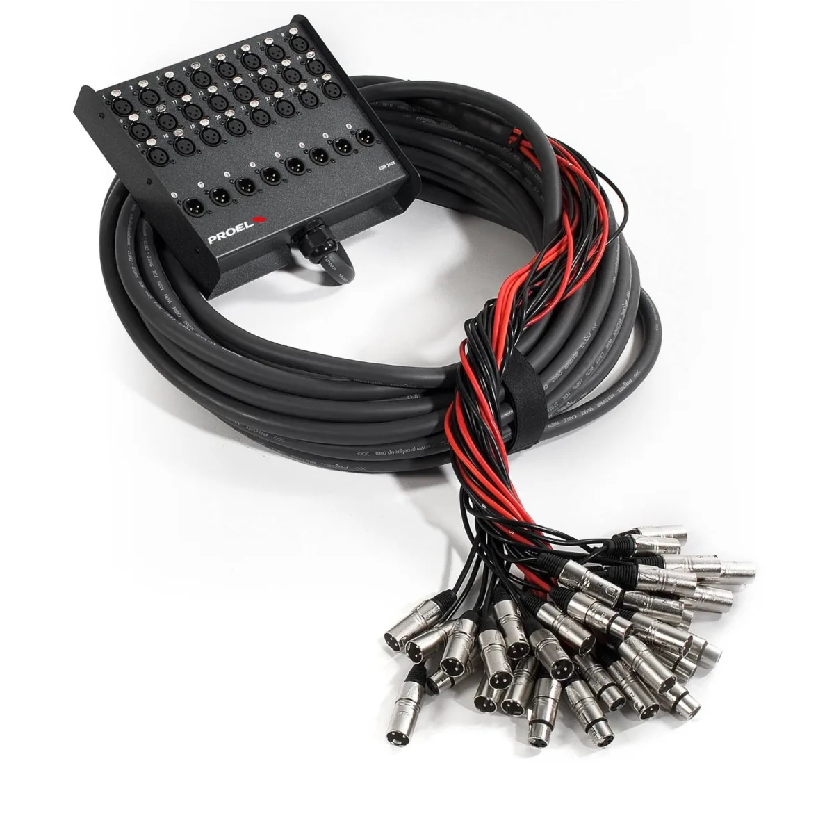 The EBN Audio stage boxes are constructed using an epoxy powder finish metal box, featuring small weight and dimension thanks to the professional printed circuit boards used, where high quality NEUTRIK gold-plated contacts XLR connectors are wired in automatic. Cable mount terminations are protected by PVC jackets and wired with PROEL XLRPRO Series metal connectors. CMF Series multicore cable, featuring contact earth, is used for the connections. Available configurations from 8 up to 40 channels in different lengths.