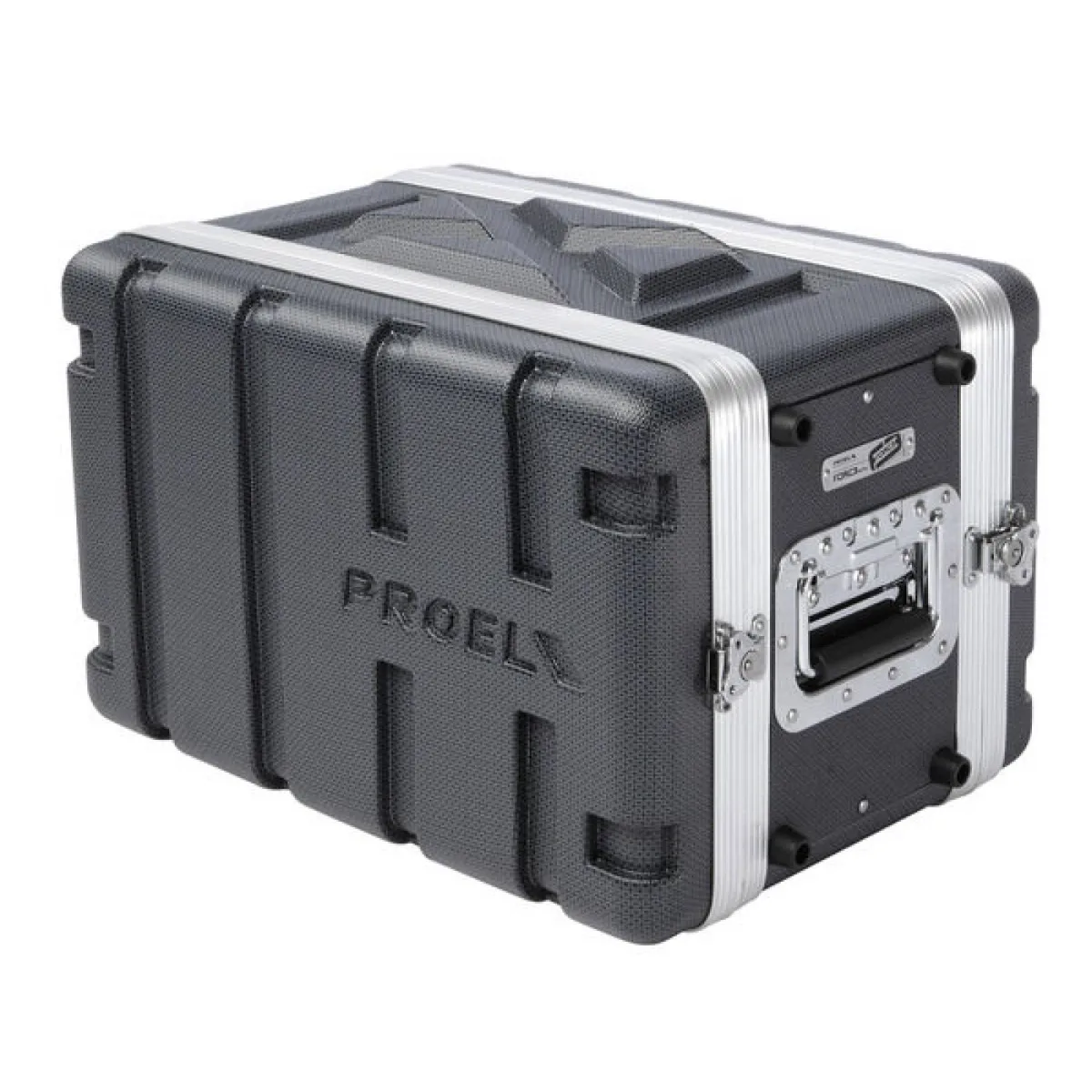 19' Shallow rack case - 6U - made of 'FORCE Polyethylene'. This new model is characterized by the low depth of the body and is particularly suitable for the installation of 'low profile' electronic equipment and wireless microphone systems. This item is part of the new series of products that includes a wide range of professional cases dedicated to the field of musical instruments and stage equipment and is an integral part of PROEL brand products. The main feature of this series is represented by the 'mix' of components and polymers used, including the carbon fibre, for the realization of the panels used in the construction of the ABS cases. The result of all this is the 'FORCE Polyethylene' which combines excellent resistance to chemicals and weathering, and is at the same time very light and durable over time.