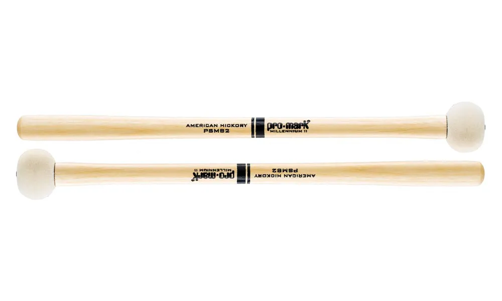 ProMark PSMB2 marching bass drum beaters feature balanced hickory handles with a taper underneath the puffy