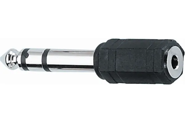 Adapter, 6.3 mm male stereo to 3.5 mm female stereo.