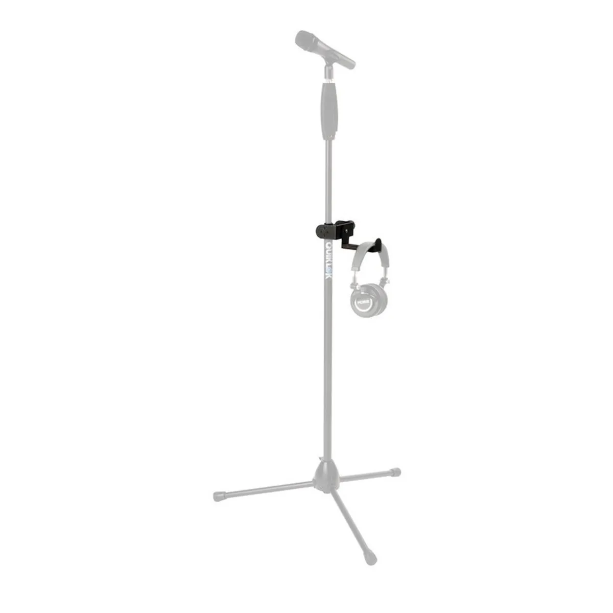 Clever, safe and practical headphone holder allows musicians to keep their headphone within immediate reach when not in use, hanging it on any instrument stand or multi-media workstation, for use on stage, production studios, in the rehearsal room or at home