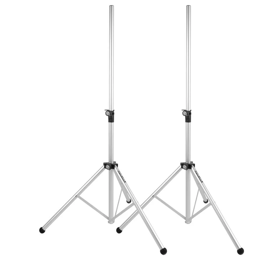 6 ft (180 cm) Speaker stand featuring air-cushion device which lowers speaker cabinets eliminating sudden drops. Available in silver satin (A) or anodized black (BK) finishes.