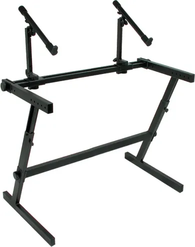 Z/726L Extra-Wide, double-tier , height adjustable “Z” frame provides a solid base for supporting all kinds of gear including keyboards/controllers, recording, audio and computer equipment in addition to a large area for placement of floor pedals.