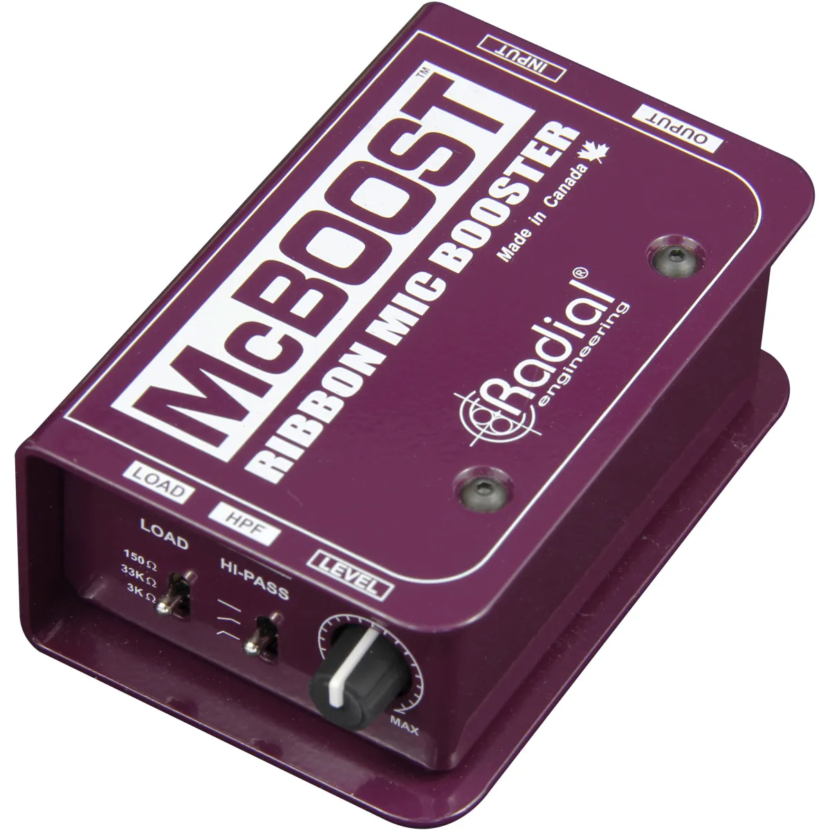 The Radial McBoost is a high performance microphone signal booster designed to elevate the output of a typical dynamic microphone for greater transient response and boost the signal of a low-output ribbon mic to bring it up to a usable level for mixing consoles or preamps that may not provide sufficient gain.