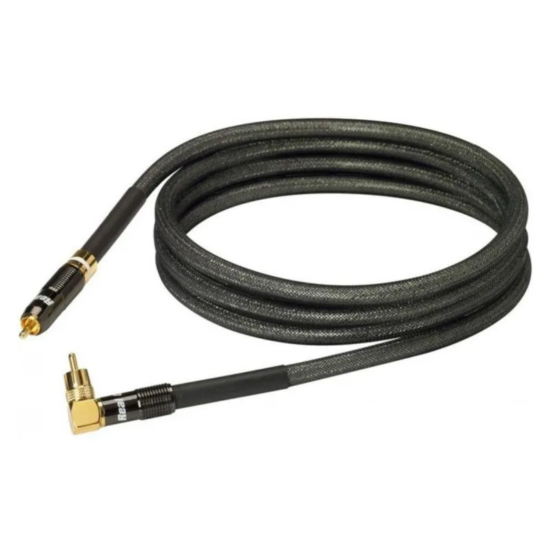 Subwoofer cable, 2m, bi-metal, silverplated OFC-copper, TDC, metal plugs, gold plated, triple shielded, straight to angled.