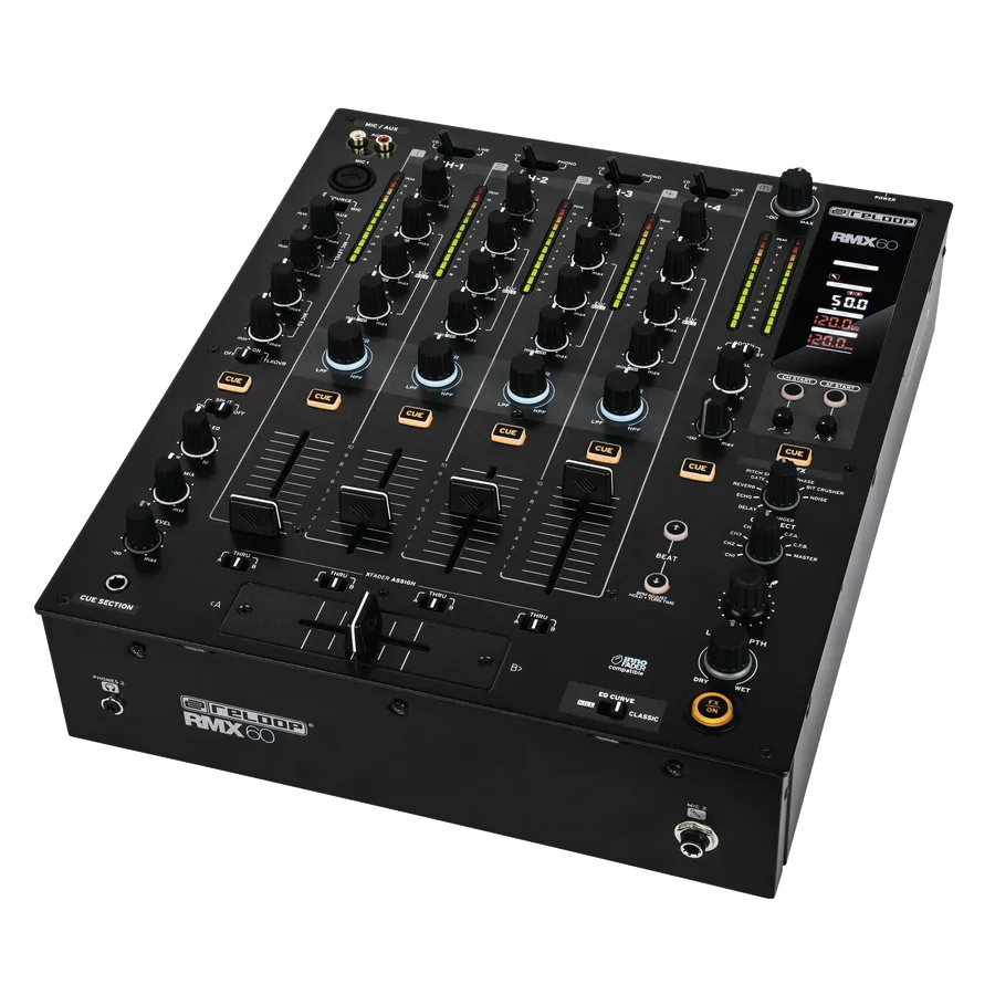 The RMX-60 Digital is a first-class mixer for any DJ application. With its extensive range of connection options, robust construction and fully-digital audio architecture; Reloop’s latest mixer takes the classic 4+1 channel mixer design and updates it to suit modern performance standards. Whether you’re using CD players, Turntables, DJ controllers or DVS systems – the RMX-60 Digital’s 11 input and 6 output options bring true versatility into the DJ booth.