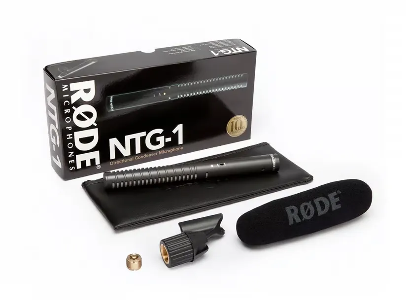 Rode NTG1 Very lightweight shotgun condenser microphone, designed for professional use in film, video, television, voice-over, and ENG production. The NTG-1 has an electronically balanced output stage and is powered via 48V phantom power. The NTG1 comes complete with mount and windscreen.