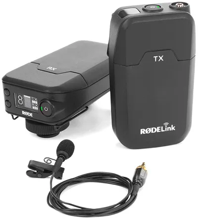 RØDELink represents the next generation of digital wireless systems. Using a series II 2.4GHz digital transmission with 128-bit encryption, it is able to constantly monitor and hop between frequencies to maintain the strongest possible signal level at a range of up to 100 metres (over 100 yards). The RØDELink Filmmaker Kit provides everything you need to start shooting video wirelessly, including a receiver, transmitter and broadcast-grade lavalier microphone. The receiver (RX-CAM) features an OLED display with information on level, battery status (receiver and transmitter), mute and channel selection. The unit can be mounted on a standard camera shoe mount, 3/8" thread or belt-clip, and for added versatility the shoe mount can be located in one of two positions. The lightweight transmitter (TX-BELT) can be fitted to a belt or clothing and features a locking thread to ensure the microphone connection is as secure as possible. RØDE’s omnidirectional Lavalier microphone is included in the kit to provide the highest possible audio reproduction quality.