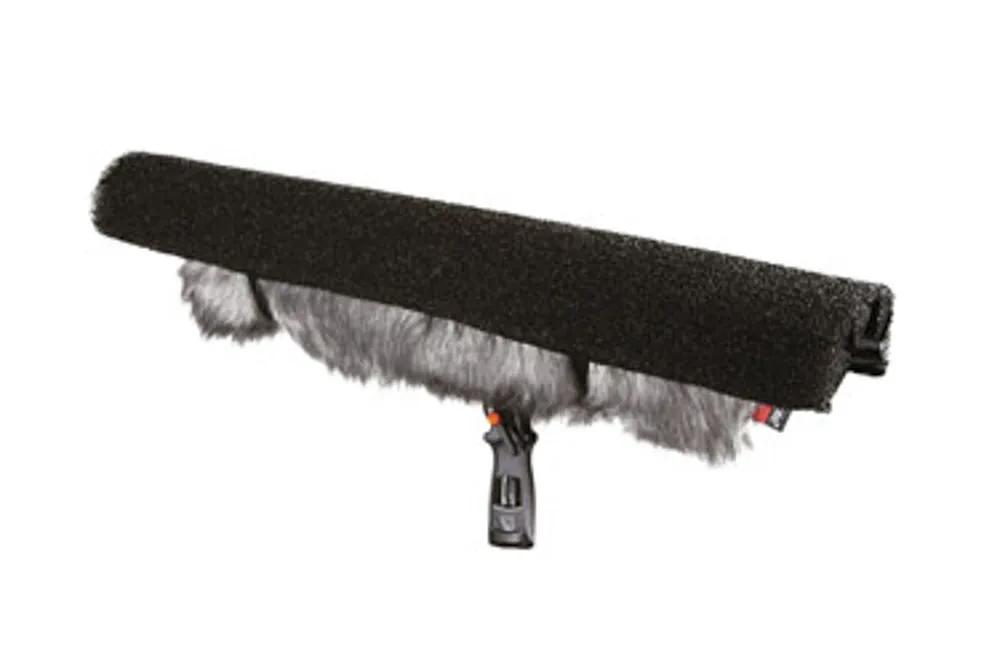 These weatherproof covers protect the microphone windshield from the effects of rain. They are made of an open-cell foam, which diffuses the sound of falling rain drops, with a weatherproof cover spaced away from the windshield to reduce impact noise. They mount on the windshield with elastic loops.