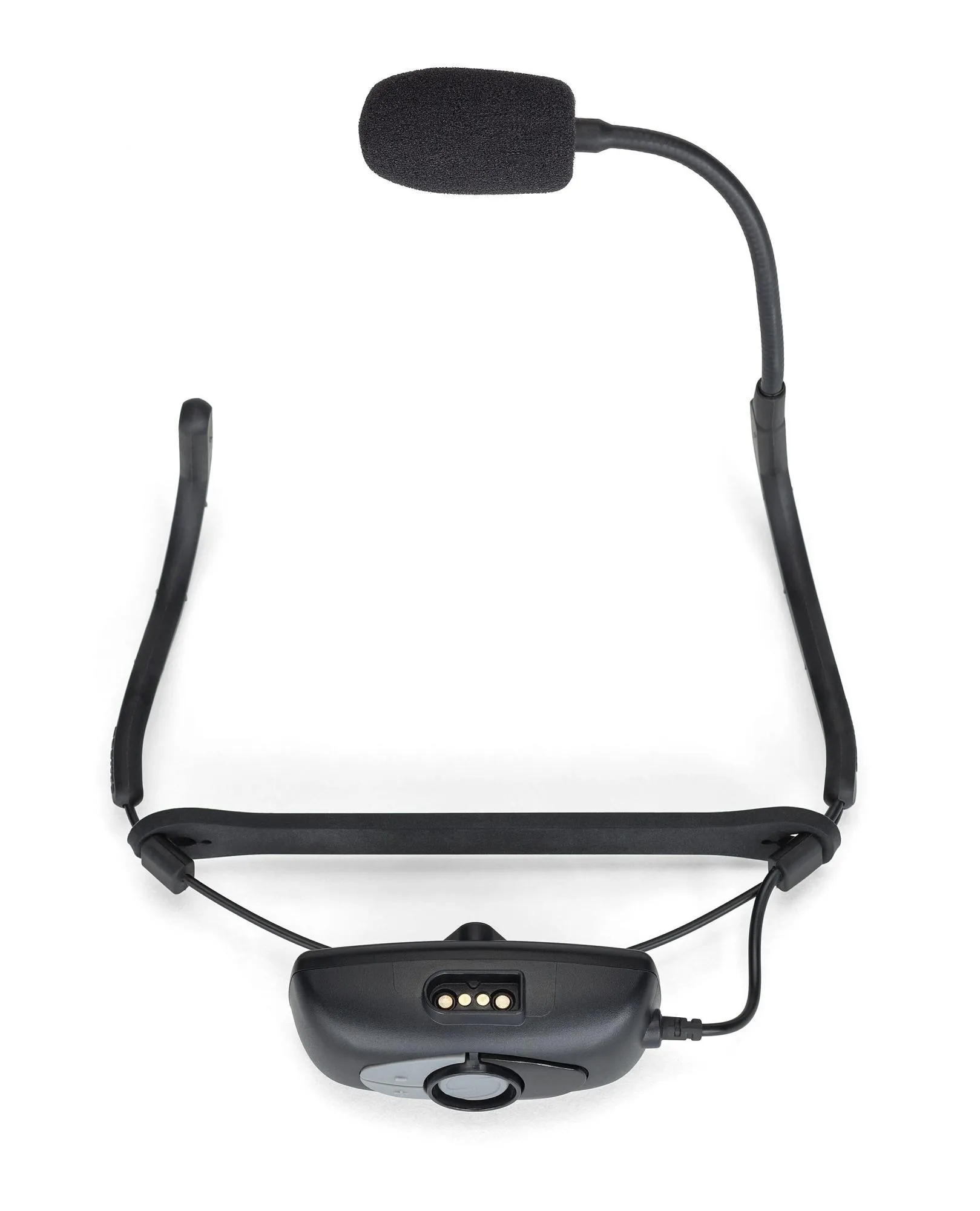 Micro transmitter mounted directly to a double ear headset (no beltpack or cable required)