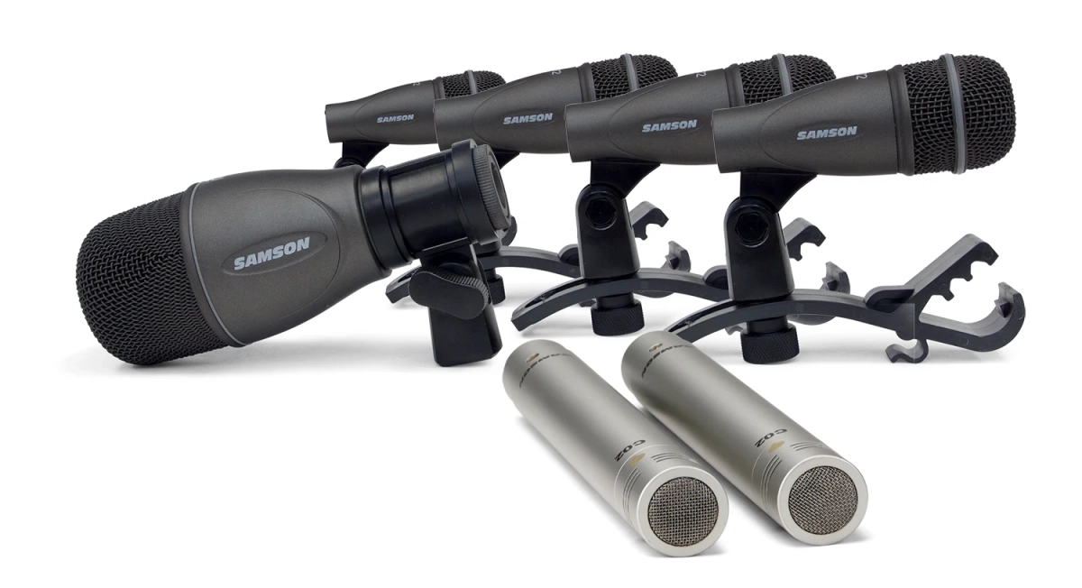 7-piece microphone kit for snare/tom drums, cymbals, and bass drum