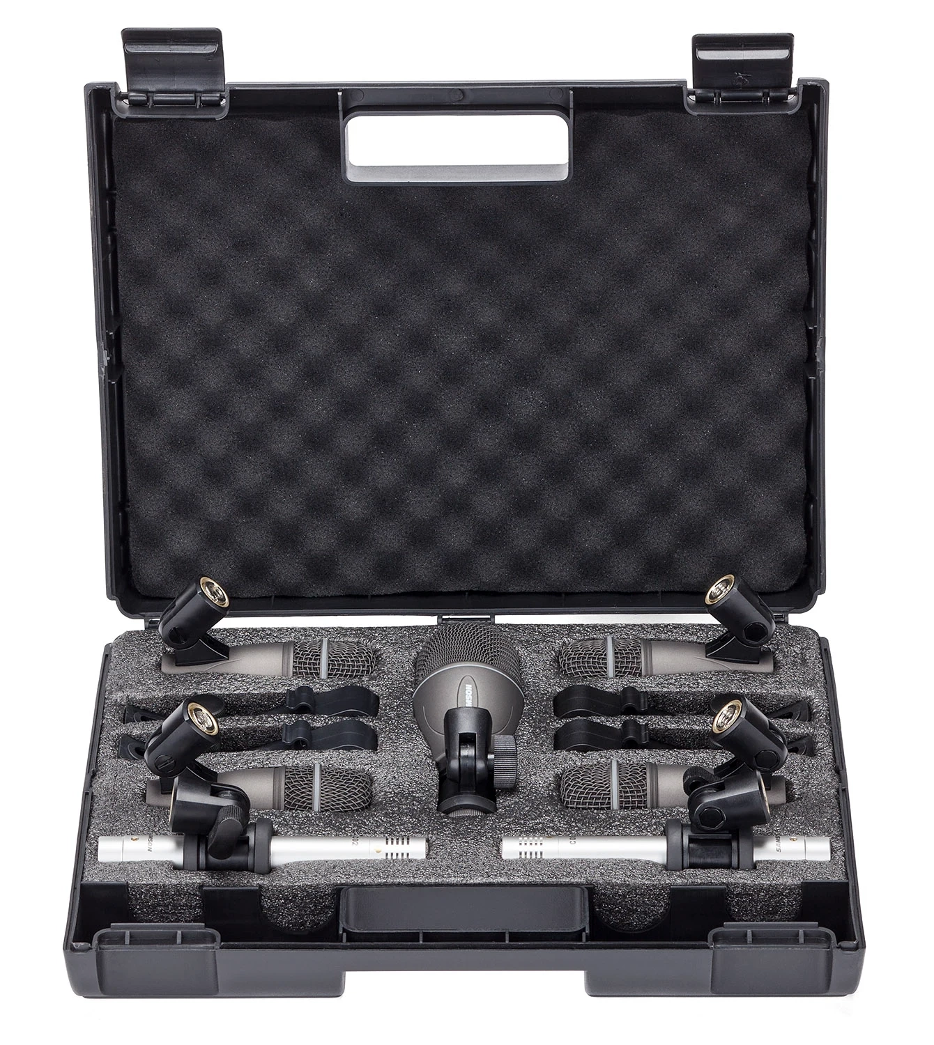 The kit includes four Q72 microphones that are suitable for miking snare drums and bass drums.
