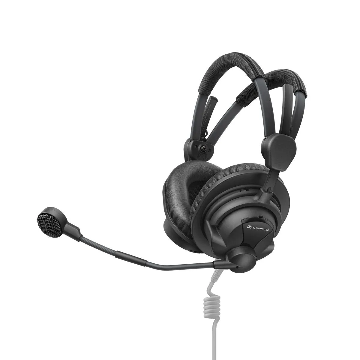 The Sennheiser HMD 300 is a professional broadcast headset designed for clear communication and reliable monitoring in demanding environments such as radio, television, stage production, and live events. Its closed over-ear design provides effective passive noise isolation and balanced, linear sound reproduction, ensuring accurate monitoring even in loud surroundings. The headset features an ergonomic design with comfortable ear cushions and a split headband for extended wearing comfort. The integrated dynamic super-cardioid boom microphone delivers focused and intelligible speech and can be worn on either the left or right side. ActiveGard technology protects hearing from sudden sound peaks.