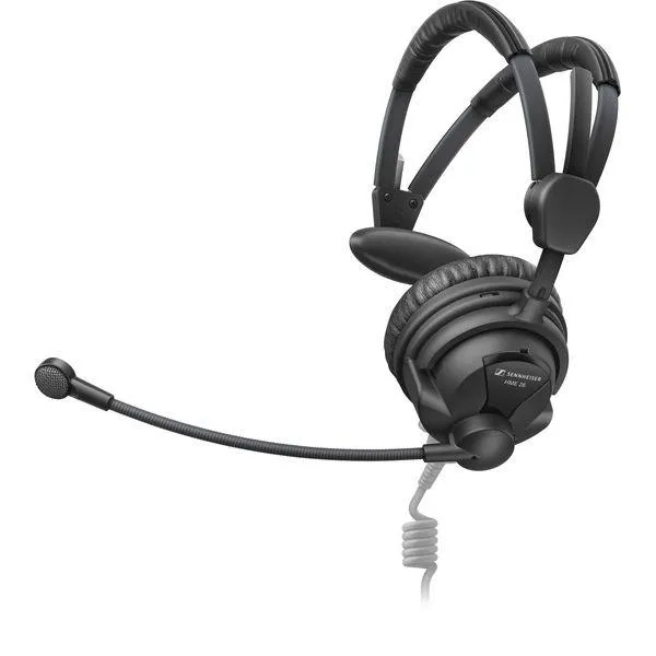 The Sennheiser HME 26 S is a professional single-sided broadcast headset with condenser microphone, designed for radio, television, and communication applications where clear speech and flexible monitoring are essential. Its closed on-ear design on one side provides effective passive noise isolation and accurate sound reproduction, while the open side allows easy interaction with the surroundings. The headset features a lightweight, ergonomic design with soft ear cushions and a split headband for excellent comfort during extended use. The integrated super-cardioid electret condenser microphone delivers highly focused and intelligible speech. ActiveGard technology protects hearing from sudden sound peaks.