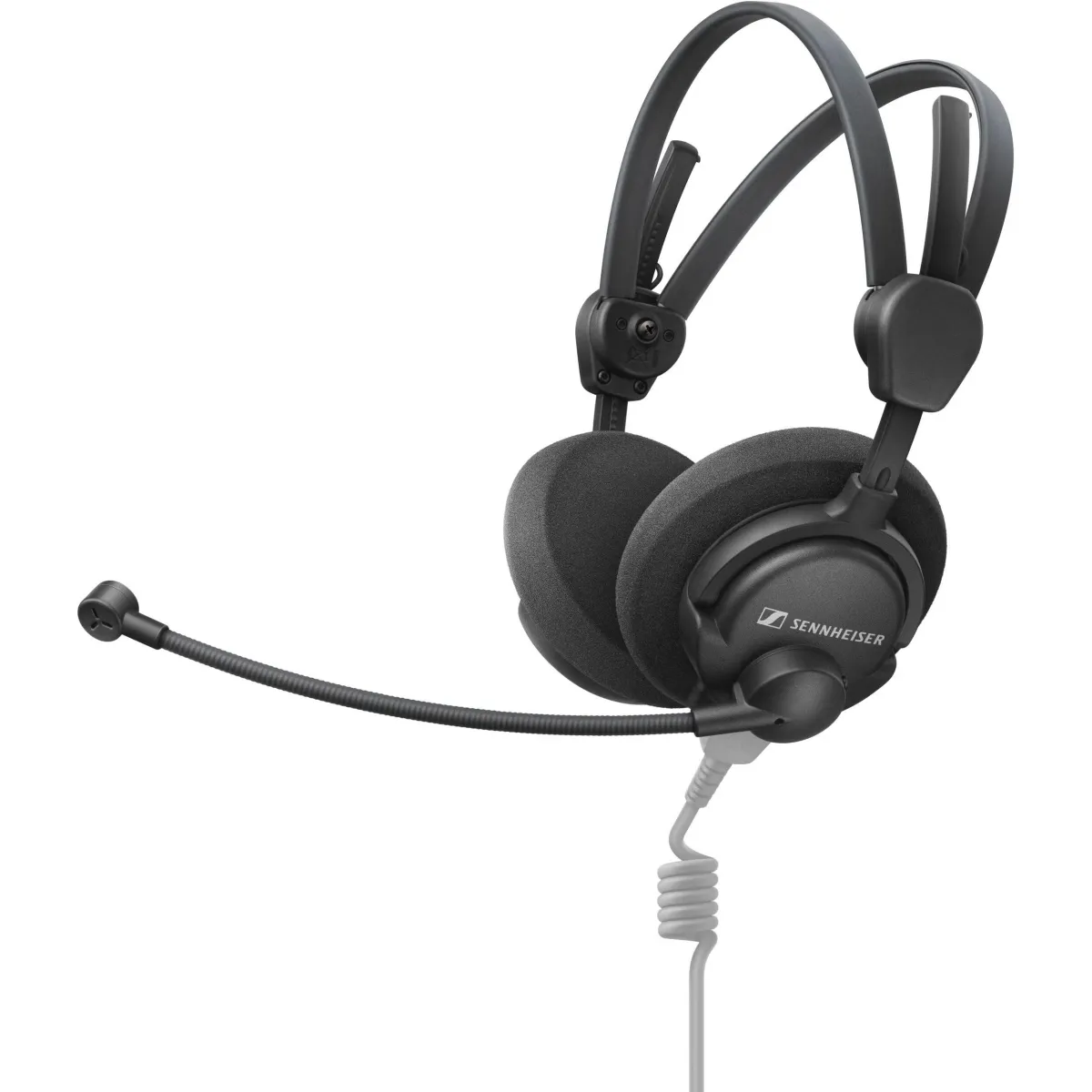 The Sennheiser HME 46 is a professional broadcast headset with condenser microphone, designed for communication and monitoring in radio, television, intercom, and stage production applications. Its open on-ear design provides natural and airy sound reproduction while remaining lightweight and comfortable for extended wearing periods. The automatically adjusting two-piece headband ensures a stable and ergonomic fit. The integrated hyper-cardioid electret condenser microphone delivers highly focused and intelligible speech, even in noisy environments. The microphone boom can be mounted on either the left or right side for maximum flexibility.