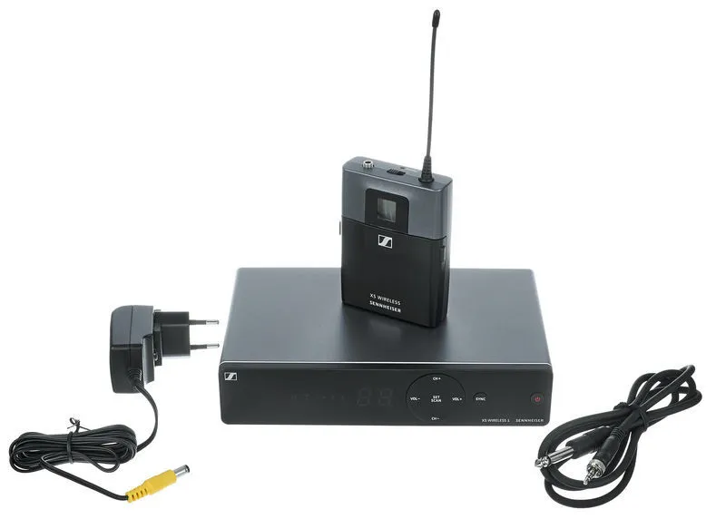 INSTRUMENT SET for guitar and bass players, with compact bodypack transmitter, rugged instrument cable and stationary receiver with built-in antennas