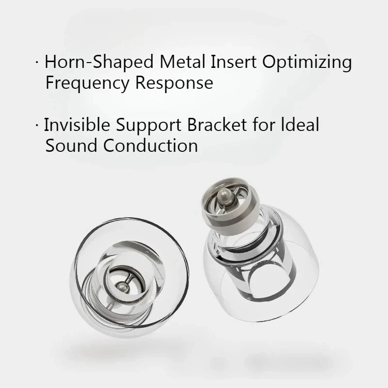 The ear tips feature an exclusive aluminum insert that minimizes distortion, while the internal support structure enhances stability and pure sound quality. The high-quality silicone ensures a secure yet comfortable fit, making long listening sessions trouble-free.