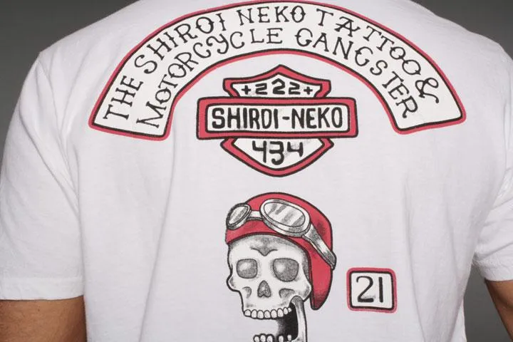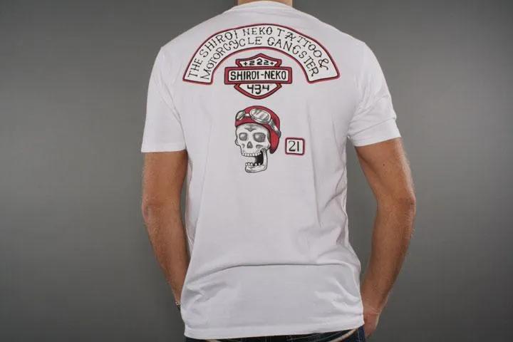 Handmade white T-shirt with large multicolored and gold foil print on the front and back. 100% cotton. White, medium.