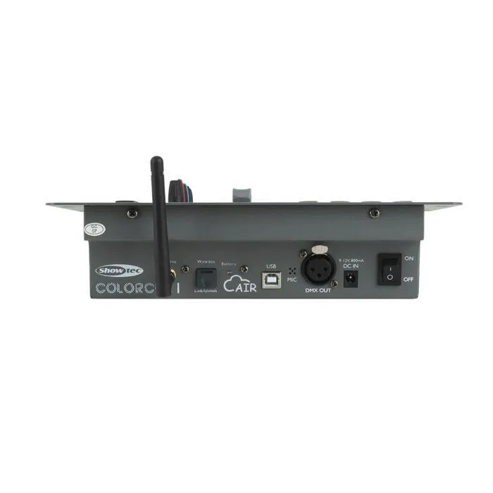 The Showtec ColorCue 1 Air is an intelligent single-fader LED DMX controller with 6 channels for wirelessly controlling the light output of LED fixtures with up to 6 colours (RGBWA-UV), suitable for any venue. Its 6 potentiometers enable you to quickly tune the lights to your desired colour, from 3-colour RGB to 6-colour RGBWA-UV. The ColorCue 1 Air enables you to create your own 12 preset colours and you can choose between 12 fixed colours. You can create up to 12 programs (chases) with each up to 99 steps for changing colours and effects in a loop. The chases can be controlled in Manual, Auto run or Sound-controlled mode. The wireless DMX capabilities and internal battery, good for up to 12 hours of operation, completely omit the need for running cables to the controller, which is ideal in a temporary setup!