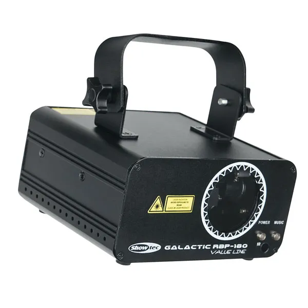 The RBP-180 is the successor of the RVP-250. Because of the change from violet into blue laser it creates the colors more intense and gives a better output. Another addition is the Ir remote controller that gives you the possibility to control the laser without DMX. The multicolor lasers from Galactic Value Line can function as a Master for the single color laser when they are used in Master / Slave mode. All Multicolor lasers from the Galactic Value Line have the same personality which has 10 DMX channels and 32 different patterns. The Galactic Value Line is a family of compact lasers with the same functionalities but different colors. These 5 new models of the value line series are equipped with an IR remote and updated with more bright and better color combinations. They all have the same control modes and programs. This makes it easy to create a versatile laser-show with different units. The Galactic Value line has one auto and one sound to light program integrated and they can be selected manually or by DMX. In DMX mode you also have total control of all Patterns, X-Y movements, zooming, speed and rotation. All Galactic value line models are equipped with optimized optics for the best laser performance.