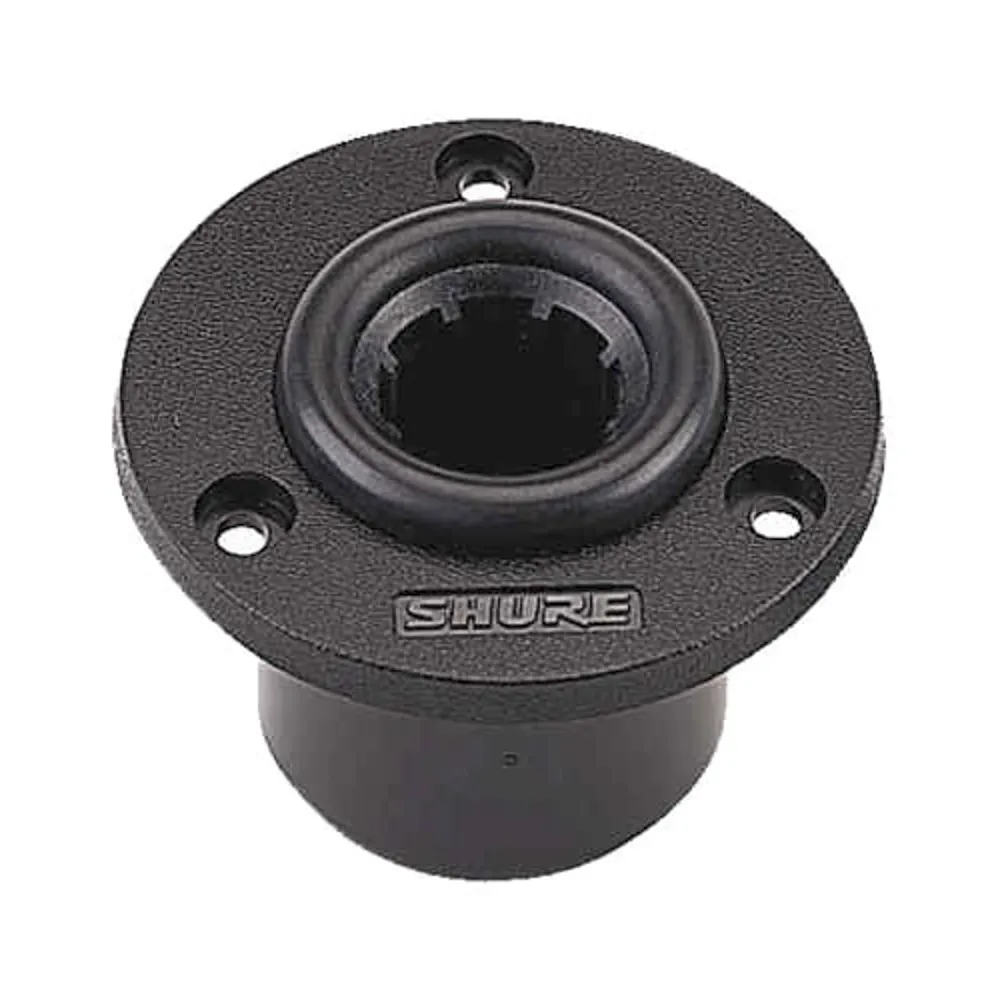 The Shure A400SM is a recessed surface mount for gooseneck and desk top microphones. The A400SM utilizes the Shure Shock-Stopper construction, which reduces the transmission of impact or surface noise by up to 20dB.