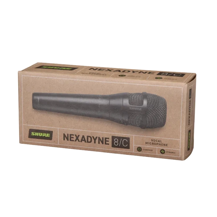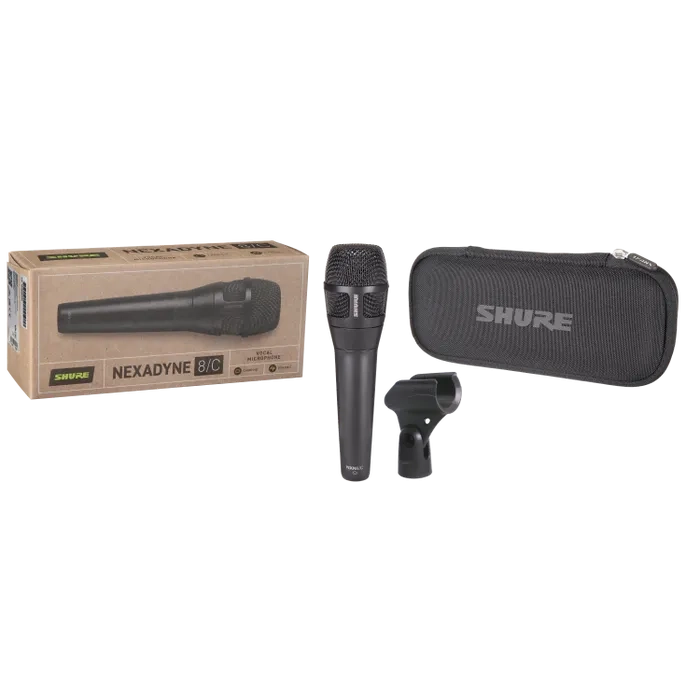 More of what you want. Less of what you don't. Designed to work show after show.The Nexadyne™ 8/C Dynamic Vocal Microphone is a live performance microphone for professional vocalists. Nexadyne Vocal microphones feature patented Shure Revonic™ dual-engine transducer technology, with two precisely calibrated transducers working together to achieve optimal performance. The result is a high-performing microphone line that combines state-of-the-art acoustic signal processing and exceptional cardioid polar pattern linearity. The natural and clean cardioid pattern of the Nexadyne 8/C allows vocals to easily reach every corner of the venue. Built with the industry standard of consistency, durability, and performance that only Shure can provide, the Nexadyne 8/C ships with a discreet black finish, mic clip and carrying case.