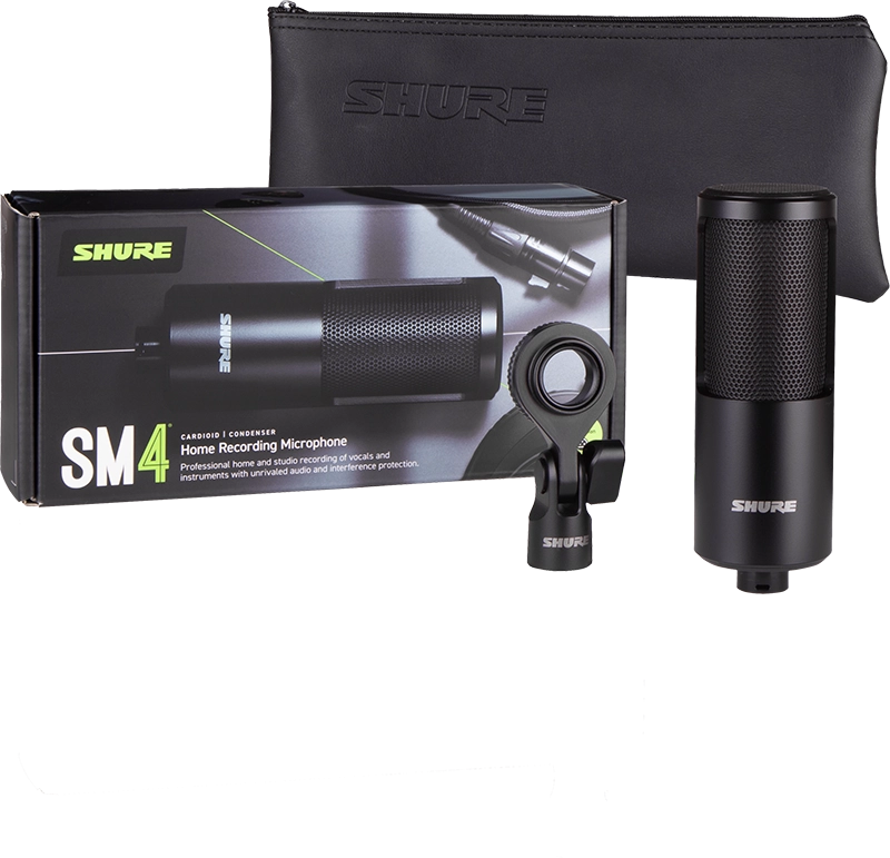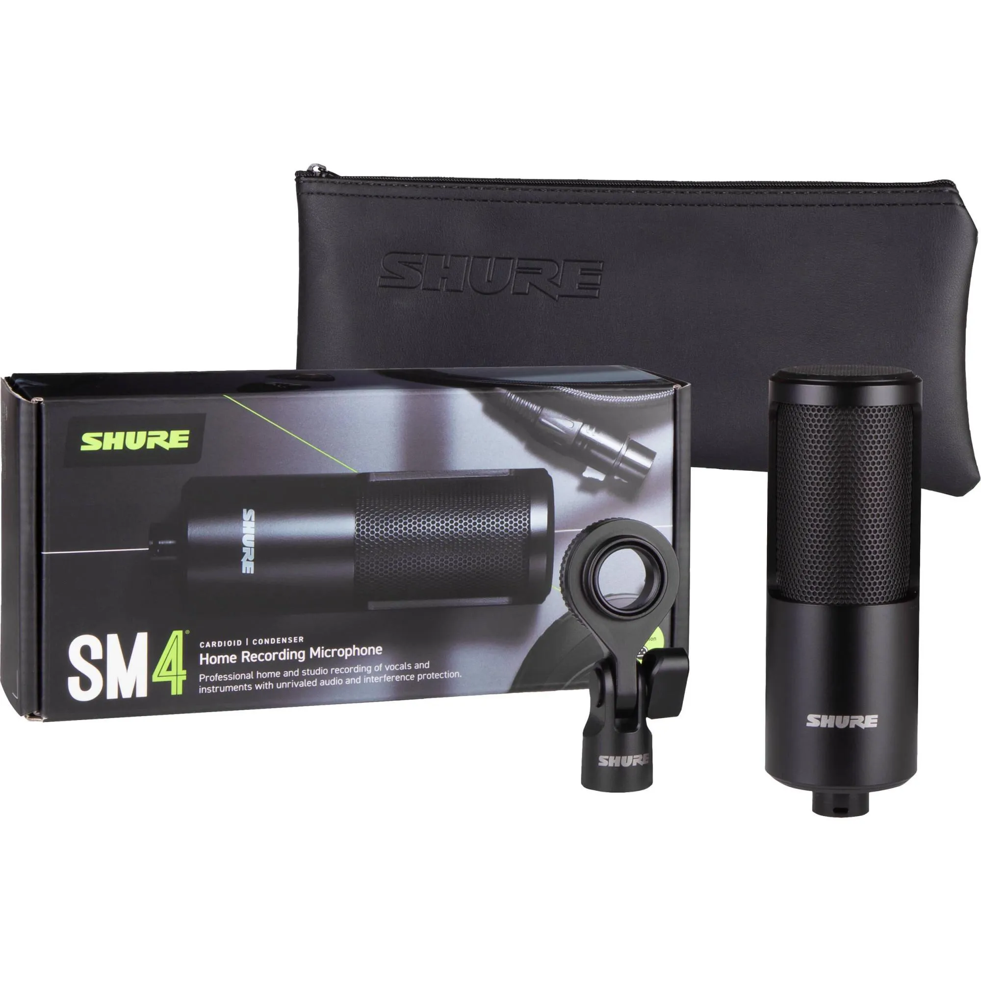 Bring the studio home with the SM4 from Shure, a large-diaphragm condenser microphone designed to provide home studios with accuracy and controlled low frequencies. Ideal for vocal and instrument recording, the SM4 features a 1" brass dual-diaphragm capsule and a patented RF shielding design for blocking unwanted interference.