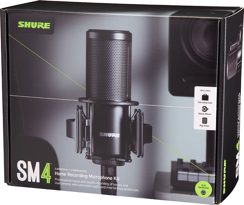 Bring the studio home with the SM4 from Shure, a large-diaphragm condenser microphone designed to provide home studios with accuracy and controlled low frequencies. Ideal for vocal and instrument recording, the SM4 features a 1" brass dual-diaphragm capsule and a patented RF shielding design for blocking unwanted interference.