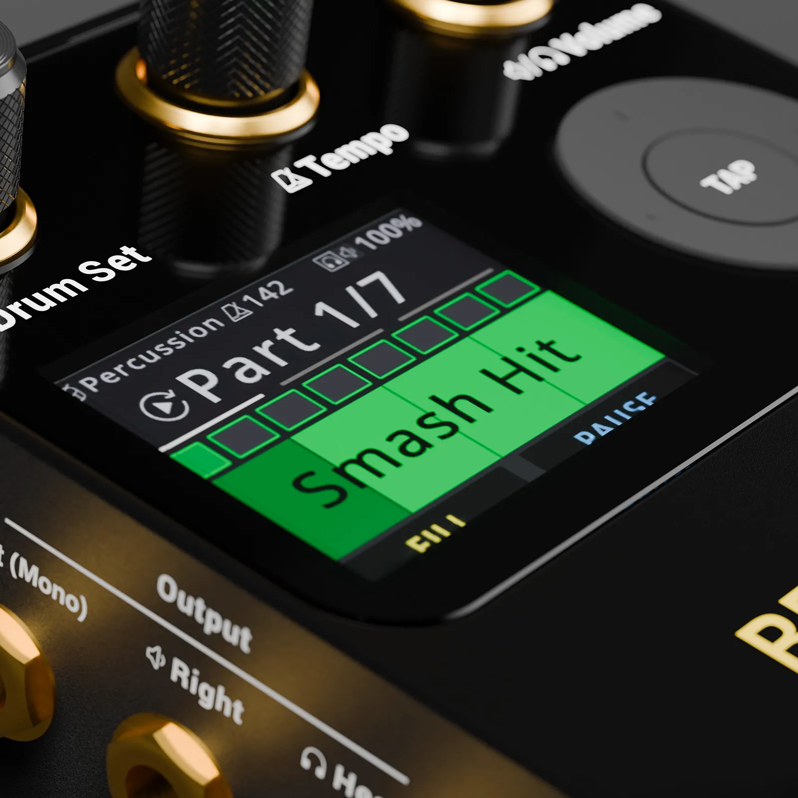 The new HD kits, 4x larger than the originals, deliver every nuance of real drums, and the intuitive visual display of the beat makes it easy to stay locked in on stage.