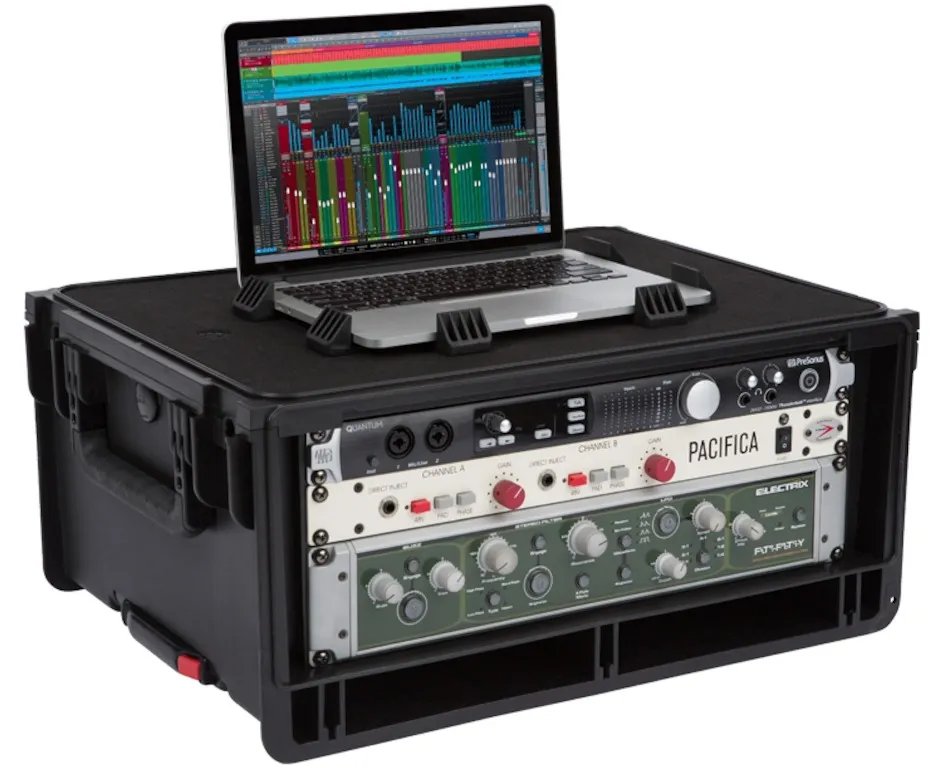 The big brother of the 1SKB-iSF2U! This case features a virtually indestructible, waterproof injection molded shell that is lighter, stronger, and more affordable than the previous 4U Studio Flyer, and includes innovative molded-in front and rear rack rails that provide even more security and durability for sensitive studio equipment during travel. As a larger Studio Flyer option, The 1SKB-iSF4U offers a 4U rack mount measuring 15" from front rail to rear rail which safely accommodates deeper equipment, such as the Universal Audio Apollo audio interface.