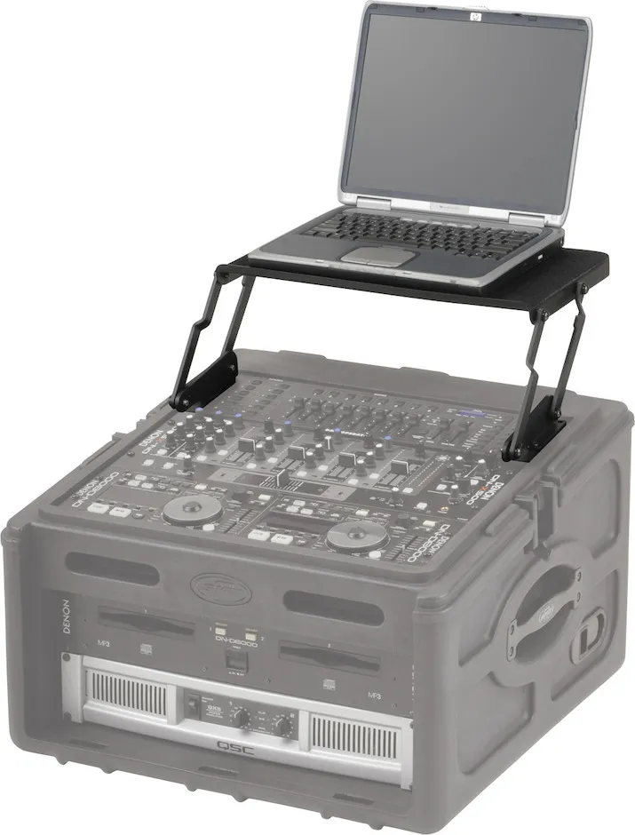 The AV-8 is an 8U retractable shelf designed to be used with our 1SKB-R102, 1SKB-R104, 1SKB-R106 and 1SKB19-R1208 products. Not only is the AV-8 a great accessory/add-on for those products, but also can be mounted to any slant top mixer case with at least 8U of rack space, including our 1SKB-82DJ, 1SKB-84DJ and 1SKB-106DJ products. The AV-8 is the perfect solution for a laptop or projector.