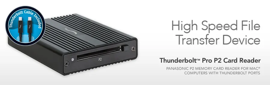 Thunderbolt-to-P2 Memory Card Reader—Enables you to ingest files from P2 memory cards to any Mac with a Thunderbolt or Thunderbolt 2 port