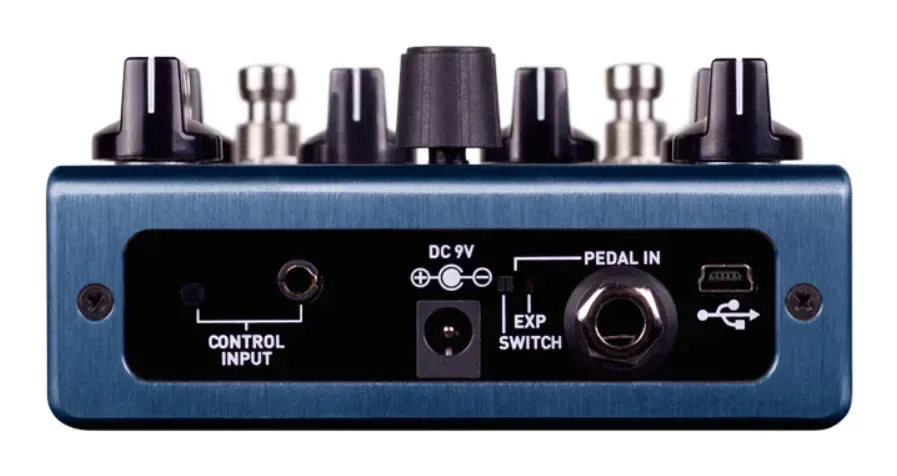 Connectivity options include stereo inputs and outputs, MIDI I/O, USB for editing and control, and expression or external switch support, making it ideal for modern pedalboards and studio setups.