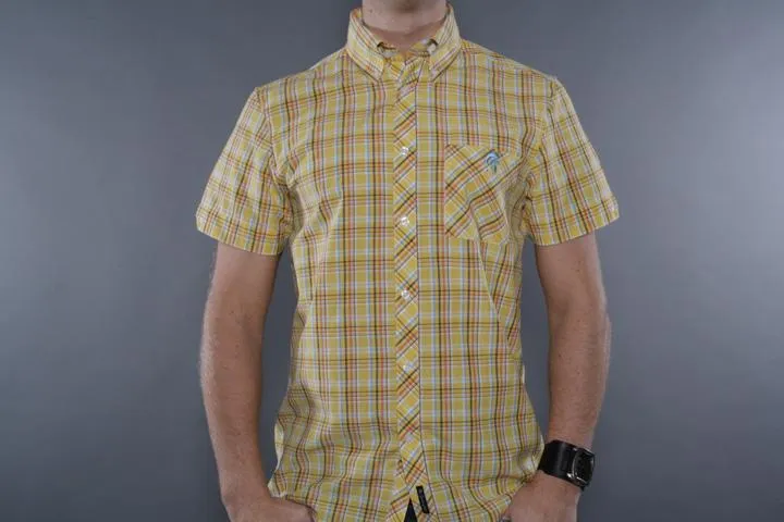 Short-sleeved shirt with embroidery on the chest pocket. 60% cotton, 40% polyester. men, 4077, small.