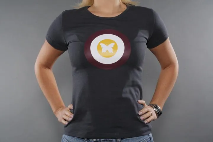 Gray t-shirt with print on the chest. 95% cotton, 5% elastane. Women's, gray, large.