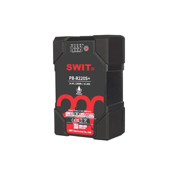PB-R220S+ supports 6A fast charging by SWIT PC-P461S or S-3812S fast charger, to save more than 50% charging time. The 220Wh PB-R220S+ battery can be charged from 0 to 80% after 2.3 hours, and fully charged within 3.5 hours.