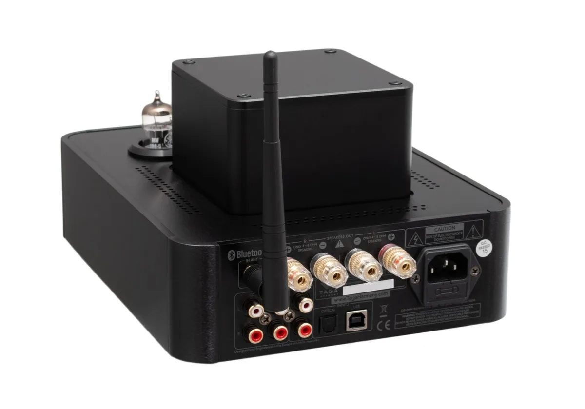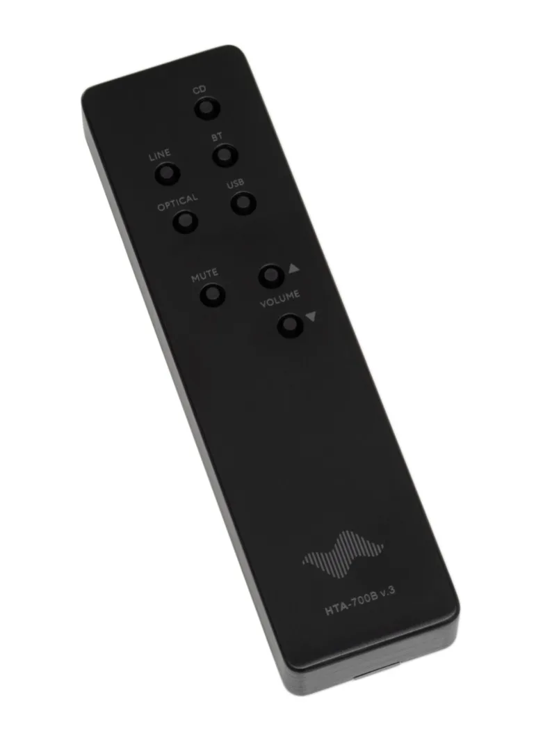 A dedicated pre-out allows connection to an external power amplifier, powered subwoofer, or active speakers. All RCA sockets and speaker terminals are gold-plated for optimal signal transmission. A high-fidelity headphone amplifier enables private listening. An aluminum remote control and removable Schuko–IEC C13 power cable are included.