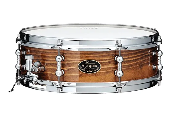 The drum set is a jazz instrument — but you can play any style of music on it. The "Jazz Bass" was, in fact, played on more hit pop tunes than you can count; the "Jazz Snare" may enjoy equally legendary status one day. Designed to be affordable without any compromise in its playability or sonic footprint, the Peter Erskine Jazz Snare by TAMA is a unique 14"x4.5" drum, made of Spruce and Maple plies with a reinforcing ring on the batter side only. The drum whispers and shouts, with brilliant focus and snap. The sensitivity provided by the shallow depth is balanced by the 8-lug design which allows for a low fundamental body of sound. The drum follows your every command and will take you to new places, too. Every drummer should have a "Jazz Snare" as part of their collection; the beautiful wood/gloss finish assures compatibility with any drum set.