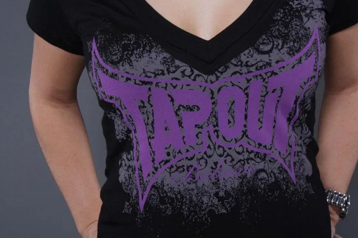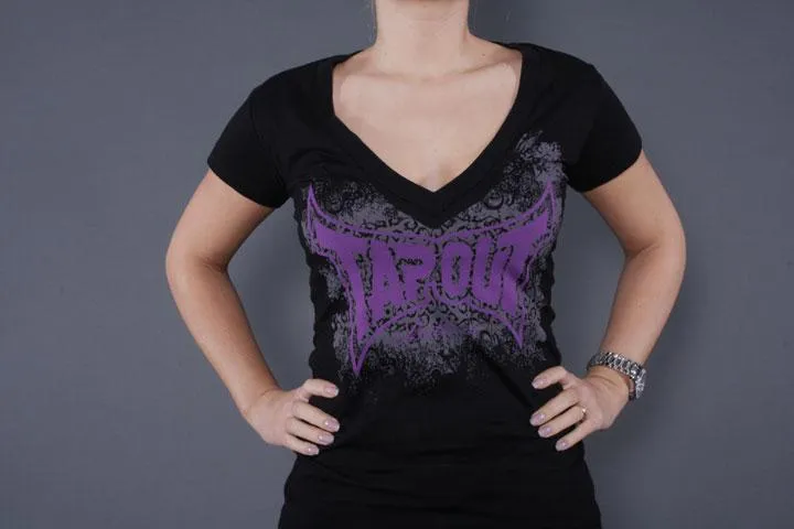 Black V-neck T-shirt with large Tapout logo printed across the chest. “Believe” is printed below the logo. Small.