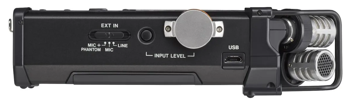 The DR-44WLB has a pair of high-quality stereo condenser microphones built from high-performance components and arranged in XY pattern. These mics can handle high sound pressure levels without distortion. Two locking XLR inputs for external mics or sources are also available.
