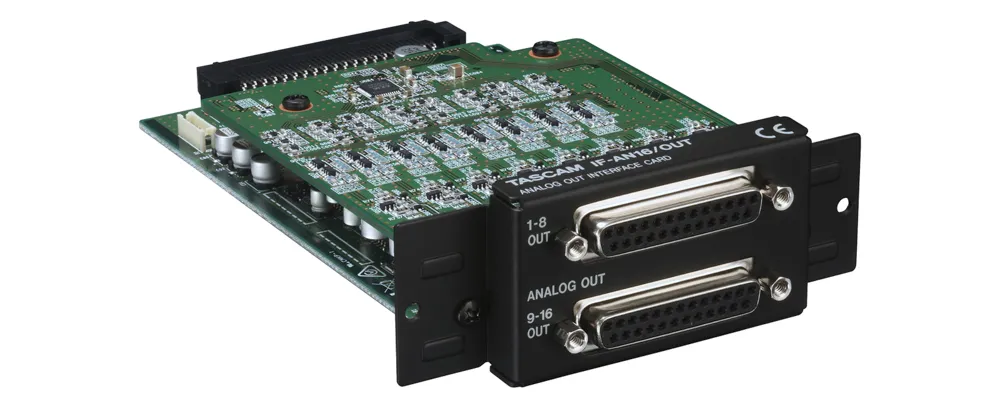 The IF-AN16/OUT 16-Channel Analog Interface Card from Tascam is designed to fit the DA-6400 64-Channel Recorder. The IF-AN16/OUT card features two 25-Pin Sub-D connectors for 16 analog channels.